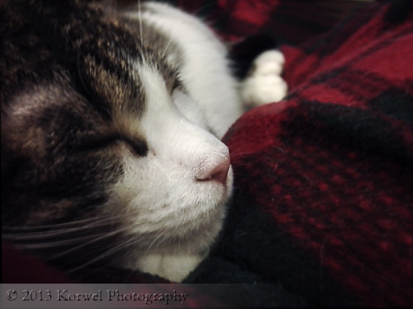 My cat, Torie is my evening companion. Whenever I stretch on the couch, to watch TV or read, she finds herself on my laps in a second. While photographing her with my SLR is close to impossible, it is bulky, noisy and makes Torie run for life, I often sneak up iPhone upon her. I am creating folder of images of her this way, one of my favorite evening tasks is to see if I can come up with a new perspective, get the camera closer, create a unique image.